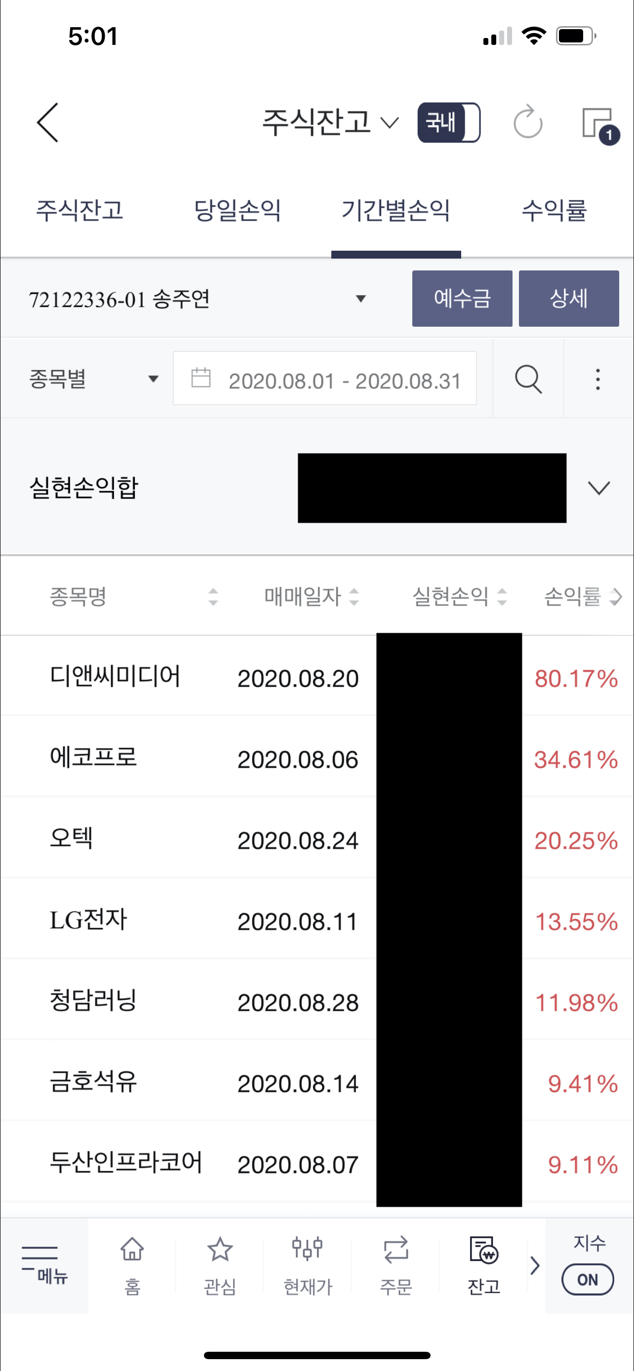 망했다고 생각한 종목들도 갑자기 급등하면서 탈출한 종목도 꽤 된다. 기억나는 종목들... 종근당, 후성..ㅠㅠ(물타기를 꽤 꾸준히 해서 이건 수익금도 꽤 되었다. )